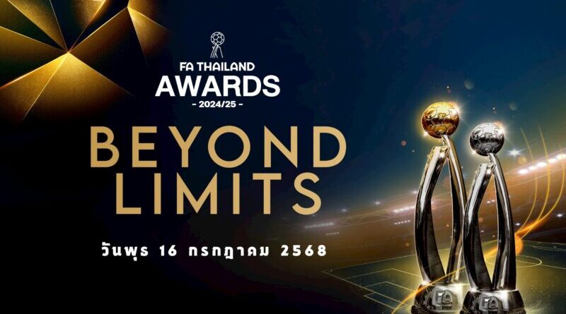 สมาคมกีฬาฟุตบอลแห่งประเทศไทย ในพระบรมราชูถัมภ์ เตรียมจัดงานประกาศเกียรติคุณ FA Thailand Awards 2024/25 เพื่อเชิดชูเกียรติยศแก่นักกีฬาและ บุคลากรฟุตบอล ที่สร้างผลงานดีเด่นในวงการฟุตบอลไทย ประจำปี 2567/68 จำนวน 30 รางวัล ณ The Banquet Hall at Nathong (เหม่งจ๋าย) กรุงเทพมหานคร ในวันที่ 16 กรกฎาคม 2568 ตั้งแต่เวลา 17.00 – 20.00 น.