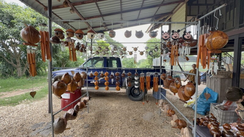 วันที่ 19 ก.ค. 68 ที่บริเวณบ้านเลขที่ 82 หมู่ที่ 6 ตำบลไผ่ดำพัฒนา อำเภอวิเศษชัยชาญ จังหวัดอ่างทอง พบอดีตหนุ่มสาวโรงงาน นำกะลามะพร้าวแปรรูปสร้างรายได้อย่างงาม หลังผันตัวกลับบ้านเกิด ใช้ชีวิตยึดหลักเศรษฐกิจพอเพียง ด้วยการชุบชีวิตมะพร้าวแห้ง นำกะลามะพร้าวมาสร้างมูลค่า ประดิษฐ์ในรูปแบบต่าง ๆ โดยเรียนรู้ด้วยตนเองจากสื่อออนไลน์ ยูทูป และนำมาดัดแปลง มีทั้ง โคมไฟ โมบาย บ้านสัตว์เลี้ยง ออมสิน และที่ใส่ของเบ็ดเตล็ด รวมถึงของที่ระลึก ของใช้ในช่วงเทศกาลต่าง ๆ มีลวดลายร่วมสมัย สร้างรายได้เลี้ยงครอบครัวอย่างงาม