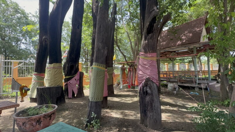 อ่างทอง สุดแปลกต้นตะเคียนขนาดใหญ่ตั้ง7ต้นหน้าวัดสีดำเป็นเงางาม ตามคำบอกกล่าวของคนโดนแฝงร่าง ไม่พลาดส่องตัวเลข พบเห็น 78 – 79 ชัดเจน