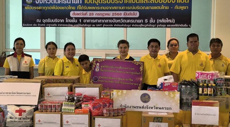 นครนายก – จังหวัดนครนายก เปิดจุดรับบริจาคเงินและสิ่งของจำเป็นเพื่อบรรเทาทุกข์พี่น้องชาวไทยที่ได้รับผลกระทบจากสถานการณ์บริเวณชายแดนไทย – กัมพูชา