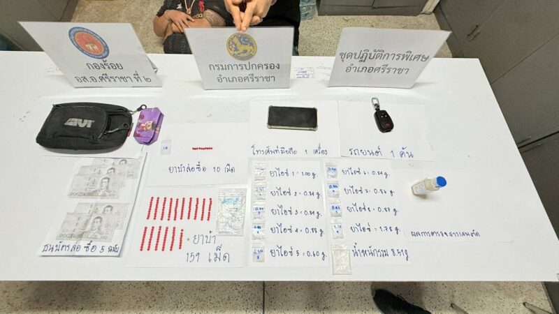 อำเภอศรีราชา ปฏิบัติการกวาดล้างยาเสพติด “No Drugs ~ No Dealers” จับกุมผู้ค้าและเสพ 1 ราย