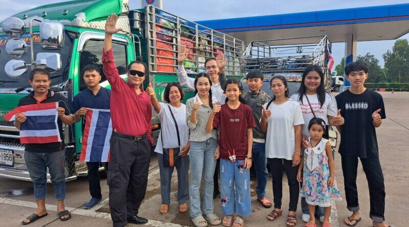 เลือดเนื้อ เชื้อชาติไทย” ไปด้วยใจ ศูนย์รับผู้อพยพวัดป่าซำตารมย์ ผู้อำนวยการศูนย์นายวชิรพล ศิริรัตน์พิทักษ์ ตำแหน่งผู้ใหญ่บ้าน หมู่ที่ 7 บ้านซำตารมย์ ต.ตระกาจ อ.กันทรลักษ์ จ.ศรีสะเกษ
