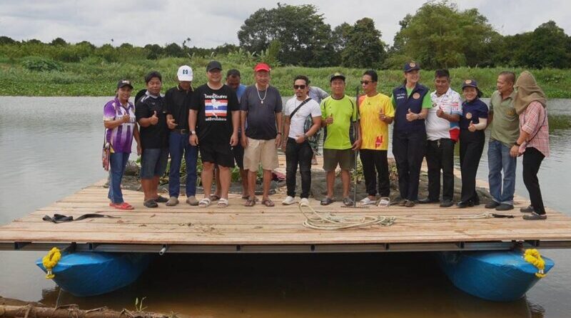 ชมรมกำนันผู้ใหญ่บ้านจันทนิมิต รับมอบแพจากผู้บริจาคเพื่อใช้ในการเก็บสวะ และผักตบชวาเปิดช่องทางระบายน้ำลงทะเลป้องกันอุทกภัยเขตเมืองจันทบุรี