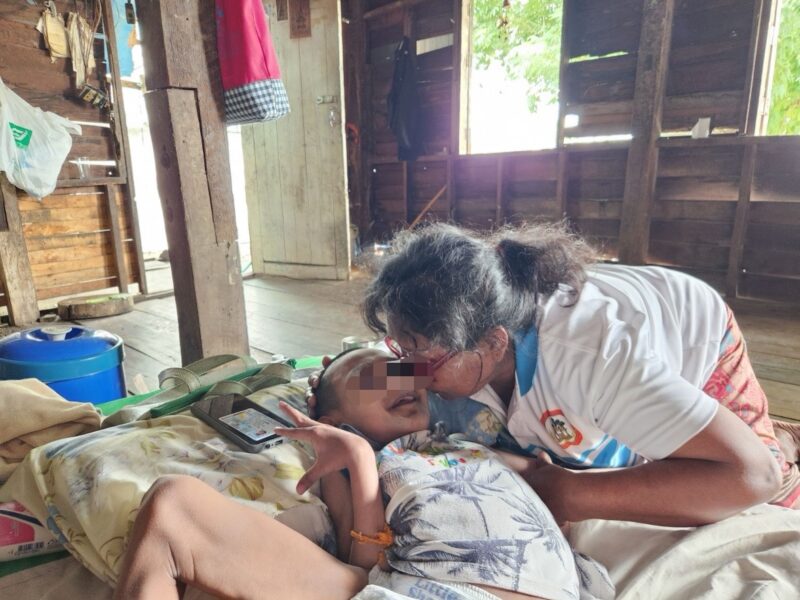 ขณะผู้สื่อข่าวลงพื้นที่ ได้พบกับภาพประทับใจที่อบอวลไปด้วยความรักของแม่ลูก โดยคุณแม่คำนาย กำลังนั่งเช็ดตัวให้ลูกชายอย่างเบามือ ก่อนจะปะแป้งให้ พร้อมป้อนข้าว ป้อนน้ำ และพูดคุยหยอกล้อกับน้องกันอย่างอ่อนโยน เป็นภาพที่แม้เรียบง่าย แต่เปี่ยมด้วยความอบอุ่นและสะท้อนถึงความรักอันลึกซึ้งที่แม่มีให้กับลูกชายที่ไม่สามารถพูดหรือตอบสนองได้เหมือนเด็กทั่วไป