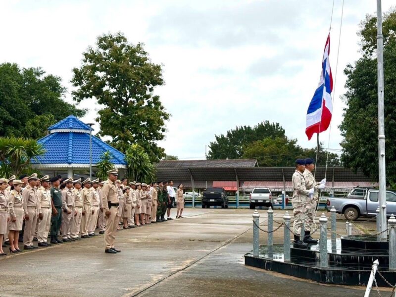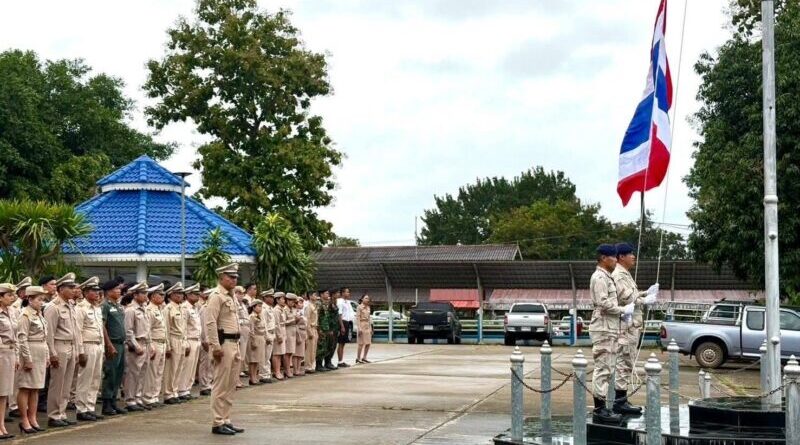 มุกดาหาร – ข้าราชการในสังกัดพื้นที่อำเภอดอนตาล นักเรียนพ่อค้าประชาชน ร่วมเชิญธงชาติร้องเพลงชาติไทยเนื่องในวันพระราชทานธงชาติไทย ประจำปี 2568