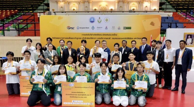 ปิดฉากการแข่งขันกีฬาบริดจ์ ชิงชนะเลิศประเทศไทย ประจำปี 2568 ทีม Euphoria by MDMLX คว้าแชมป์ประเภททีมเยาวชนอายุไม่เกิน 26 ปี ขณะที่ ทีม All For One & One For All ผงาดแชมป์ประเภททีมประชาชน ได้ครองถ้วยพระราชทาน “สมเด็จพระเจ้าลูกเธอ เจ้าฟ้าพัชรกิติยาภาฯ” ด้าน “ชยวัฒน์ พิเศษสิทธิ์” นายกสมาคมกีฬาบริดจ์ไทย เป็นปลื้ม การแข่งขันประสบความสำเร็จ ได้มาตรฐานโลก ขณะที่ สหพันธ์บริดจ์โลก (WBF) ชื่นชม “ส.บริดจ์ไทย” พัฒนานักกีฬาเยาวชน ได้อย่างยอดเยี่ยม