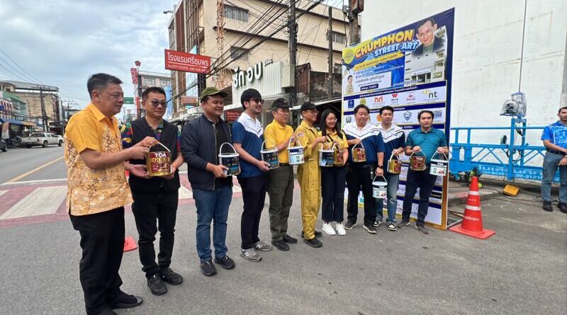 วันที่ 1 ตุลาคม 2568 เวลา08.30 น ณ ตึก NT ถนนศาลาแดง อำเภอเมืองชุมพร จังหวัดชุมพร นายเธียรชัย ชูกิตติวิบูลย์ ผู้ว่าราชการจังหวัดชุมพร ให้เกียรติมาเป็นประธาน พิธีเปิดโครงการ Chumphon Street Art คิงภูมิพล ร่วมกับ นายชวัส จำปาแสน (ครูอะไหล่) ศิลปินผู้ก่อตั้งโครงการสตรีทอาร์ตคิงภูมิพล นายศรีชัย วีระนรพานิชนายกเทศมลตรีเมืองชุมพร ดร.สุรินทร์ เหล่าพัทรเกษมประธานสภาอุตสาหกรรมท่องเที่ยวจังหวัดชุมพร นายจาฏุพจน์ ไกรมาก ประธานหอการค้าจังหวัดชุมพร นางเพ็ญลดา สายสวัสดิ์ คลังจังหวัดชุมพร นายพิทยา มินชาติ โทรคมนาคมจังหวัดชุมพร หัวหน้าส่วนราชการ กลุ่มธนาคารสมองชุมพร นายธรรมนูญ เศวตเวชประธานชมรมคนรักในหลวงจังหวัดชุมพร นายพิทยา วงศ์สัมฤทธิ์ ประธาน กลุ่มสุมหัวรักบ้านพ่อ และพี่น้องชาวจังหวัดชุมพร