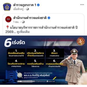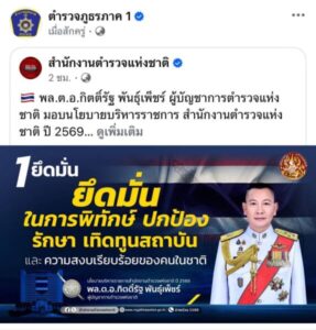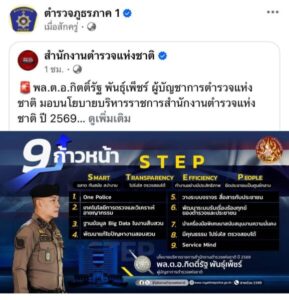 “1 ยึดมั่น 6 เร่งรัด 9 ก้าวหน้า” นโยบาย พล.ต.อ.กิตติ์รัฐ พันธุ์เพ็ชร์ ผู้บัญชาการตำรวจแห่งชาติ