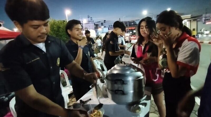 สีสัน นักศึกษาปี 4 สาขาเทคโนโลยีอุตสาหกรรม มหาวิทยาลัยราชภัฏสงขลา เจอไฟท์บังคับนั่งขายลูกชิ้นและไส้กรอก ในตลาด วัฒนธรรม มหาวิทยาลัยราชภัฏสงขลา ก่อนจบ