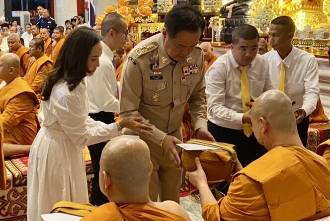 ปทุมธานี – นายกหนูอนุทินควงภรรยาร่วมนายกแจ็สบวชพระ20รูป ยกช่อฟ้าวัดเทพสรธรรมาราม ประชาชนหลายพันคนรอเข้าร่วมพิธี