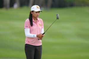 Pimpisa Rubrong of Thailand lines up her putt at the 18th hole, during the first round of the Women’s World Amateur Team Championship at Tanah Merah Country Club, in Singapore on Wednesday, 1 Oct. 2025. (Copyright USGA/Steven Gibbons)
