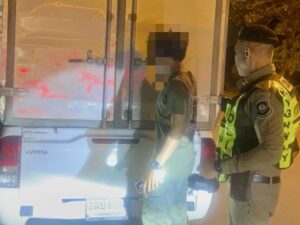 เมื่อตรวจสอบภายในรถพบคนขับชื่อ นายณัฐกานต์ (ขอสงวนนามสกุล) อายุ 30 ปี เป็นชาวพิษณุโลก ส่วนภายในตู้ทึบด้านหลังรถ พบแรงงานต่างด้าวชาวเมียนมาจำนวน 13 คน ทั้งหมดเป็นเพศชาย และเป็นแรงงานต่างด้าวที่หลบหนีเข้าเมืองโดยผิดกฎหมาย ซึ่งนายณัฐกานต์ให้การว่า รับแรงงานต่างด้าวทั้งหมดมาจากป่าอ้อยติดภูเขา ต.ท่ามะกา จ.กาญจนบุรี โดยติดต่อผ่านนายหน้าคนหนึ่ง ได้ค่าจ้างหัวละ 1,500 บาท เพื่อนำไปส่งที่ อ.หาดใหญ่ จ.สงขลา เจ้าหน้าที่จึงแจ้งข้อกล่าวหา “ผู้ใดรู้ว่าคนต่างด้าวคนใดเข้ามาในราชอาณาจักรโดยฝ่าฝืนพระราชบัญญัติบุคคลต่างด้าว ให้เข้าพักอาศัย ซ่อนเร้น หรือช่วยด้วยประการใดๆ เพื่อให้บุคคลต่างด้าวนั้นพ้นการถูกจับกุม”