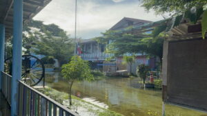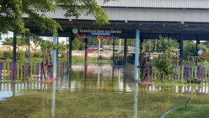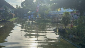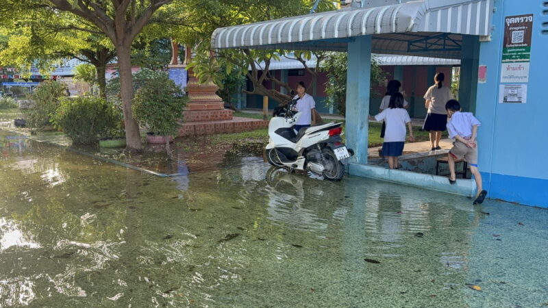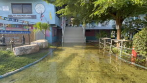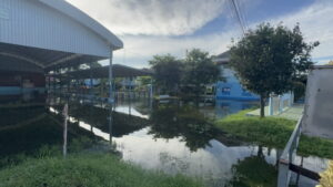 อ่างทอง – น้ำเจ้าพระยาไหลซึมขยายวงกว้างเอ่อท่วมโรงเรียนนักเรียนเดินลุยน้ำท่วมสูงกว่า30เซนติเมตร