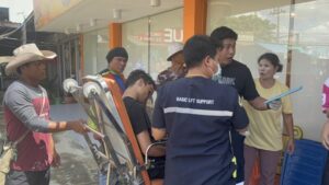 ที่หน้าร้านดังกล่าว พบคนงานชายชาวเมียนมา จำนวน 2 คน อยู่ในอาการหมดสติและถูกให้การช่วยเหลือจนฟื้นคืนสติ อยู่ในอาการสะลึมสะลือ เจ้าหน้าที่จึงเร่งปฐมพยาบาลและประสานรถพยาบาลจากโรงพยาบาลจุฬารัตน์สุวรรณภูมิ มาสนับสนุนให้ความช่วยเหลือพาตัวคนงานชายชาวเมียนมาทั้งสองคนส่งโรงพยาบาล