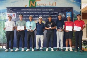 สมาคมกีฬากอล์ฟแห่งประเทศไทย ในพระบรมราชูปถัมภ์ จัดการแข่งขัน “สิงห์-กรุงไทย จูเนียร์ กอล์ฟ แชมเปี้ยน” รอบคัดเลือกสู่ “สิงห์ ไทยแลนด์ จูเนียร์ เวิลด์ กอล์ฟ แชมเปี้ยนชิพ” ดวลกันที่สนามนารายณ์ฮิลล์ กอล์ฟ รีสอร์ท แอนด์ คันทรี คลับ จ.ลพบุรี สัปดาห์ที่ผ่านมาได้ 12 นักกอล์ฟเยาวชนคลาส C-D สัปดาห์นี้ถึงคิวของคลาส A (15-18 ปี), คลาส B (13-14 ปี) ระหว่างวันที่ 2-5 ตุลาคม 2568 โดยมียอดฝีมือเข้าร่วมเกือบ 100 คน โดยคุณรังสฤษดิ์ ลักษิตานนท์ นายกสมาคมกีฬากอล์ฟแห่งประเทศไทยฯ ได้เดินทางไปชมผลงานนักกอล์ฟดาวรุ่งไทย พร้อมให้กำลังใจ ติดขอบสนามเช่นเคย