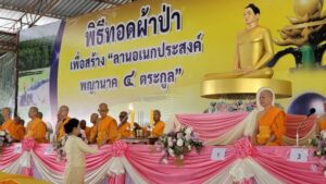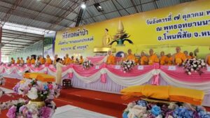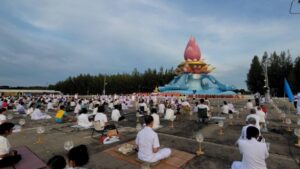ปทุมธานี – ชาวพุทธ 2 ฝั่งโขงแห่ร่วมพิธีใหญ่ทอดผ้าป่าสร้างลานพญานาค พร้อมจุดประทีปบูชา วันออกพรรษา