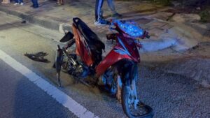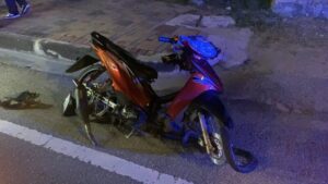 ที่เกิดเหตุพบรถจักรยานยนต์ยี่ห้อฮอนด้า เวฟ 110 ไอ สีแดง หมายเลขทะเบียน 1 กผ 5298 ชลบุรี สภาพแต่งซิ่ง ท่อดัง ล้มคว่ำได้รับความเสียหายยับเยิน รอหน้าหลุด ชิ้นส่วนอะไหล่กระจายเกลื่อนพื้น กลางถนนพบร่องรอยการล้มไถล มีนายสุระบดินทร์ แดงมณี อายุ 20 ปี คนขับขี่ได้รับบาดเจ็บ มีบาดแผลถลอกทั่วร่างกาย ส่วนผู้ซ้อนท้ายอีก 2 ราย เป็นเยาวชนอายุ 18 ปี และ 14 ปีได้รับบาดเจ็บมีแผลถลอกตามร่างกายเช่นกัน เจ้าหน้าที่กู้ภัยฯได้ให้การปฐมพยาบาลเบื้องต้น ก่อนเคลื่อนย้ายส่งโรงพยาบาลใกล้ ใกล้กันพบรถยนต์เก๋ง ยี่ห้อ MG สีขาว หมายเลขทะเบียน งย 6461 ชลบุรี ด้านหน้าฝั่งขวามีร่องรอยเฉี่ยวชนได้รับความเสียหาย มีนายคุณากร พันชุมเสน อายุ 35 ปี เป็นคนขับ ยืนรอให้การกับเจ้าหน้าที่ตำรวจ