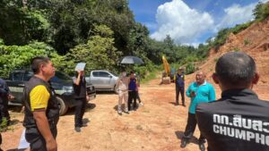 เจ้าหน้าที่สนธิกำลังลงพื้นที่ตรวจสอบ พื้นที่บริเวณถนนสายสามควนบ้านรัตนโกสัย หมู่ที่ 5ตำบลปากตะโก อำเภอทุ่งตะโก จังหวัดชุมพร ในเขตป่าตามพระราชบัญญัติป่าไม้พุทธศักราช 2484 พื้นที่ป่าอยู่ในชั้นคุณภาพลุ่มน้ำภาคใต้ตามมติ ครม เมื่อวันที่ 7 พฤศจิกายน 2532 ขั้นที่สามอยู่นอกเขตป่าสงวนแห่งชาติ