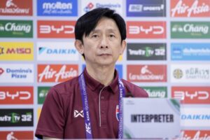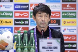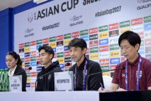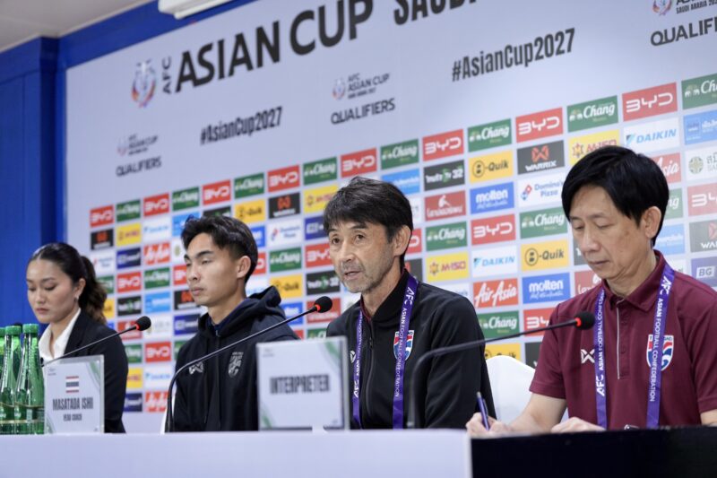 มาซาทาดะ อิชิอิ” และ “เจริญศักดิ์ วงษ์กรณ์” ร่วมแถลงข่าวก่อนการแข่งขันฟุตบอลเอเชียน คัพ 2027 รอบคัดเลือก นัดที่สาม พบกับ ไชนีส ไทเป