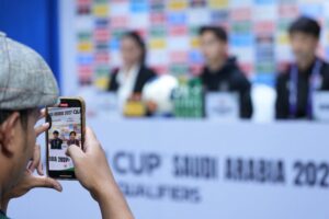 การแถลงข่าวครั้งนี้นำโดย “มาซาทาดะ อิชิอิ” หัวหน้าผู้ฝึกสอนทีมชาติไทย พร้อมด้วย “เจริญศักดิ์ วงษ์กรณ์” แนวรุกของทีม