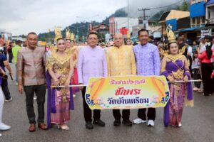เมื่อเวลา 16.00 น.วันที่ 8 ตุลาคม 2568 ที่บริเวณริมถนนเพชรเกษมกลางตลาดนางย่อน อ.คุระบุรี จ.พังงา นายไพรัตน์ เพชรยวน ผู้ว่าราชการจังหวัดพังงา เป็นประธานในพิธีเปิดงาน “ประเพณีชักพระ อำเภอคุระบุรี ประจำปี 2568” โดยมีนายบัญชา ธนูอินทร์ รองผู้ว่าราชการจังหวัดพังงา นายบำรุง ปิยะนามวาณิช นายก อบจ.พังงา นายกิตติพงษ์ มณีศรี นายอำเภอคุระบุรี ภาครัฐ ภาคเอกชน ประชาชน และนักท่องเที่ยวเข้าร่วมงานจำนวนมาก