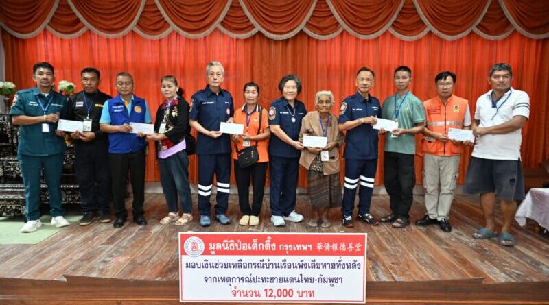 มูลนิธิป่อเต็กตึ๊ง จัดงบฯ กว่า 4.6 แสนบาท ลงพื้นที่จังหวัดอุบลราชธานี ศรีสะเกษ และสุรินทร์ มอบเงินช่วยเหลือกรณีบ้านพังเสียหายทั้งหลังจากเหตุการณ์ปะทะชายแดนไทย-กัมพูชา
