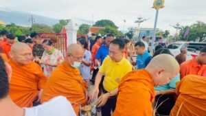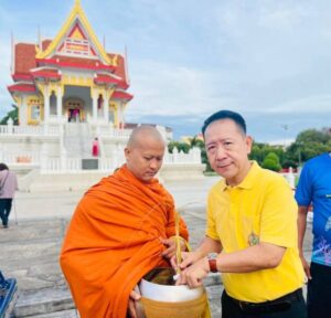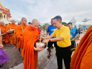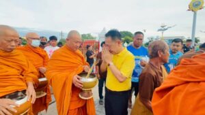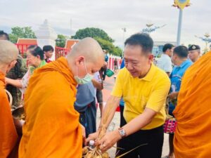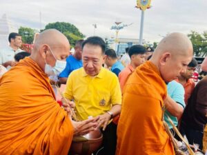 ผู้ว่าฯ ชลบุรีร่วมตักบาตรเทโวโรหณะสืบสานประเพณีออกพรรษา