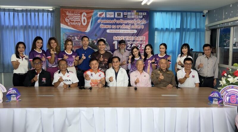เวลา 10.00 น.วันที่ 9 ต.ค.68 พ.ต.อ.สิรภพ อนุสิริ ผกก.สภ.บางใหญ่ จ.นนทบุรี นายสุวพันธุ์ โคตพงค์ ประธานคณะกรรมการตรวจสอบและติดตามการบริหารงานตำรวจ (กต.ตร.) สภ.บางใหญ่ นายศรสุทธา กลั่นมาลี หรือถั่วแระ เชิญยิ้ม,เชษฐ์ เชิญยิ้ม ดาราตลกชื่อดัง ได้ร่วมกันแถลงข่าวจัดการแข่งขันวิ่งนัดพบ ณ บางใหญ่ ครั้งที่6 จัดขึ้นทึ่บริเวณหน้าตลาด BB บางใหญ่ Market ต.เสาธงหิน อ.บางใหญ่