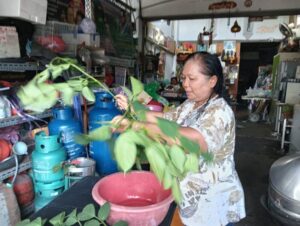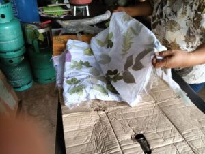 น.ส.โญธกา อุบลเฉลา อาสาสมัครพัฒนาสังคมและความมั่นคงของมนุษย์(อพช.) อ.คลองหลวง จ.ปทุมธานี เปิดเผยว่าตนเองทำงานเป็น อพช.มาอย่างยาวนาน เนื่องจากชอบช่วยเหลือผู้ด้อยโอกาสทางด้านสิทธิมนุษยชนในหลายๆด้าน จนได้รับรางวัลดีเด่นประจำภาค ซึ่งในการทำงานที่ผ่านมาตนเองได้เรียนรู้หาประสบการณ์ประกอบอาชีพเสริมให้กับครอบครัว ซึ่งการทำงาน อพช. จะแตกต่างจาก อสม. โดย อสม.จะมีค่าตอบแทนเป็นรายเดือนแต่ อพช.ไม่มีค่าตอบแทนทุกคนที่ทำงานกันตรงนี้จะทำกันด้วยใจและเสียสละในช่วงการระบาดของโควิดถือว่าเป็นช่วงวิกฤตอย่างมากต้องดิ้นรนเพื่อให้ตัวเองอยู่รอด ด้วยการห่อาชีพเสริม ก่อนหน้านั้นตนเองเย็บจักรไม่เป็นเพิ่งมาเย็บเป็นในช่วงโควิดประกอบกับมีจักรอยู่แล้ว จึงฝึกหัดเย็บเริ่มทำหมวกจากผ้าฝ้ายเนื่องจากชอบหมวกมาก โดยใช้เวลาว่างเข้าไปหาชุมชนที่รวมกลุ่มในการประกอบอาชีพเป็นรายได้เสริมก็สนใจเรื่องการทำลายใบไม้บนพื้นผ้า ด้วยการลองผิดลองถูกและก็ไม่ง่ายอย่างที่คิดจึงได้เข้าร่วมอบรมการสร้างรายได้ของโครงการต่างต่างของชุมชนแต่ก็ยังไม่ตอบโจทย์กับงานที่ตนเองต้องการทำซึ่งก็ได้เรียนรู้หาคำตอบที่ชัดเจน จนกระทั่งไปเจอโครงการเปิดอบรมสอนทำลายใบไม้บนผืนผ้าที่จังหวัดปราจีนบุรีค่าสมัครเรียน 3,500 บาท ก็ไปพบกับอาจารย์ที่ดีสอนเทคนิคการเรียนรู้ทำให้ได้สีโดดเด่นขึ้นมา อาจารย์ไม่กั๊กวิชาซึ่งก็คุ้มค่ากับการที่ไปเรียนรู้ จึงเป็นที่มาของผลิตภัณฑ์โอทอปผ้าฝ้ายลายใบไม้อีโก้ปริ้น(Ego Print)เป็นงานฝีมือด้วยการดึงสีจากใบไม้ลงใยเส้นบนผืนผ้าหรือที่ทั่วทั่วไปเขาเรียกว่างานพิมพ์ใบไม้