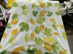 ปทุมธานีอาสาสมัครพัฒนาสังคมและความมั่นคงของมนุษย์กับผลิตภัณฑ์โอทอปผ้าฝ้ายลายใบไม้อีโก้ปริ้น(Ego Print)งานฝีมือโญแฮนด์เมด