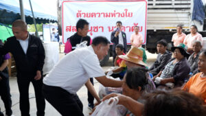 ส.ส.อนุชา ลงพื้นที่มอบถุงยังชีพซับน้ำตาผู้ประสบอุทกภัยในพื้นที่ ต.โพนางดำออก