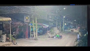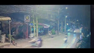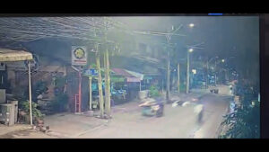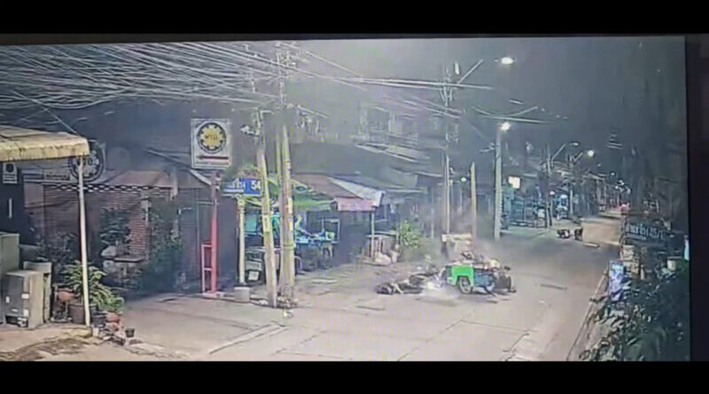 โดยกล้องวงจรปิดของเทศบาล สามารถจับภาพได้ขณะ ที่คนเจ็บทั้งสองคนขี่และซ้อนท้ายรถจักรยานยนต์กันมา ได้ขับขี่รถจักรยานยนต์มาด้วยความเร็วลักษณะเหมือนแข่งขันกันมากับอีก 3 คัน (ยังไม่ทราบว่ามาด้วยกันหรือไม่) รถของคนเจ็บได้เบี่ยงออกมาทางขวา ซึ่งเป็นเลนสวน ขณะนั้นได้มีวินรถจักรยานยนต์รับจ้างขี่มาพอดี รถของคนเจ็บได้เฉี่ยวชนกับวินรถจักรยานยนต์รับจ้าง จนเสียหลักล้มแล้วทั้งรถจักรยานยนต์และตัวของคนเจ็บไถลชนกับรถซาเล้งขายปลาหมึกย่างซ้ำ ส่วนรถจักรยานยนต์อีก 3 คัน ซึ่ง 2 ใน 3 ได้ขี่ผ่านไป ส่วนอีก 1 คัน ได้กลับวนรถกลับไปทางเก่า