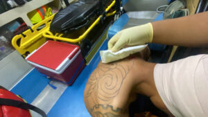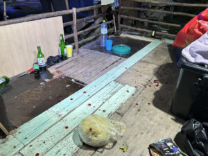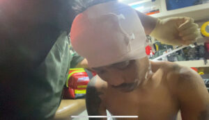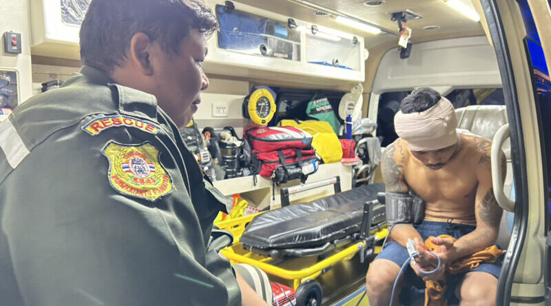 ที่เกิดเหตุ ที่หน้าห้องพัก แค้มป์คนงาน พบนาย ทราย อายุ 31 ปี ชาวเมียนมาร์ อยู่ในอาการเมาสุรา ถูกมีดฟันที่ศีรษะด้านหน้าแผลฉกรรจ์ และที่หลังอีกแผล เลือดไหลอาบ เจ้าหน้าที่มูลนิธิร่วมกตัญญูปฐมพยาบาลเบื้องต้น และนำส่งรักษาตัวที่ รพ.บางพลี
