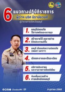 6 แนวทางปฏิบัติราชการผู้ว่าฯนริศ นิรามัยวงศ์ผู้ว่าราชการจังหวัดชลบุรี