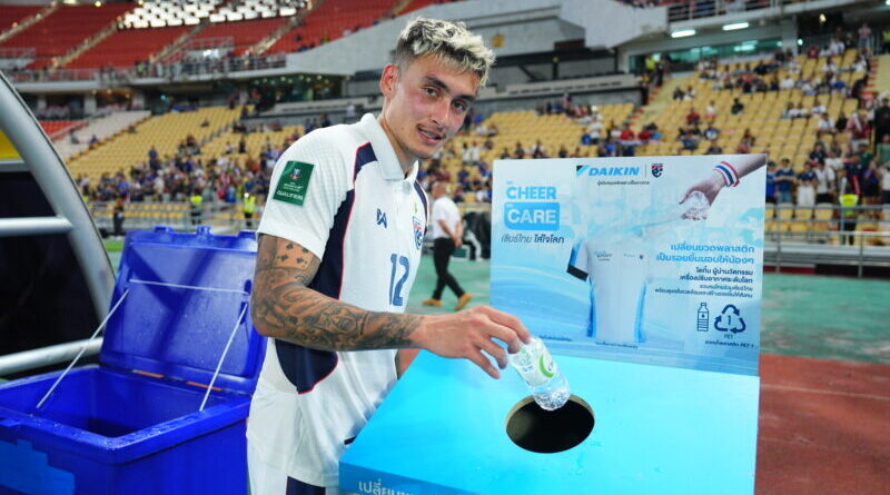 ไดกิ้นดันแคมเปญ ‘We Cheer We Care’ โค้งสุดท้าย ชวนแฟนบอลไทยคัดแยกขวดพลาสติก รีไซเคิลเป็นเสื้อกีฬาให้น้องๆ สร้างสนามเชียร์สะอาดในศึกเอเชียนคัพ