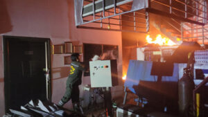 ถังแก๊สระเบิดไฟไหม้โซนห้องครัวภายในโรงกลึง ด้านเจ้าของเข้าไปดับไฟถูกไฟลวกเจ็บ