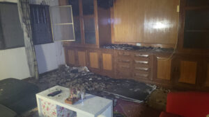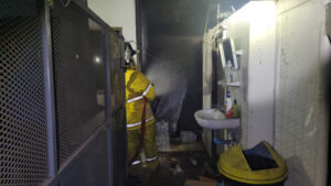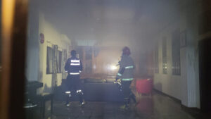 ในที่เกิดเหตุมีลักษณะเป็นโกดังหลังคาสูง ภายในมีอุปกรณ์เครื่องจักรและชิ้นส่วนหลายอย่าง ที่ด้านข้างฝั่งซ้ายมีลักษณะเป็นสำนักงาน ที่ด้านในฝั่งสำนักงานพบเพลิงกำลังลุกไหม้ยางรถที่ถูกบางไว้ด้านบนห้องน้ำ ข้างกันมีลักษณะเป็นห้องครัวพบเพลิงกำลังลุกไหม้อย่างรุนแรง ก่อนจะลุกลามไปที่บ้านหลังข้าง ๆ ในระหว่างที่รอรถดับเพลิงเจ้าหน้าที่มูลนิธิและชาวบ้านได้ช่วยกันถือถังน้ำเข้าไปสาดใส่กองไฟ จนกระทั้งรถดับเพลิงมาถึงจึงระดมหัวฉีดจำนวน 2 หัวเข้าฉีดน้ำอยู่ไม่นานเพลิงจึงสงบ จากการตรวจสอบเบื้องต้นทราบว่าภายในห้องครัวได้รับความเสียหายทั้งหมด มีถังแก๊สที่ระเบิดไปแล้วจำนวน 2 ถัง และที่บริเวณด้านบนห้องน้ำซึ่งวางยางไว้ได้ไหม้ทั้งหมด ส่วนบางข้าง ๆ ได้รับความเสียหายภายในห้องรับแขก ชั้นวางทีวีไหม้เสียหาย และแผ่นฝ้าแตกหลุดลงมา มีผู้ได้รับบาดเจ็บ ทราบชื่อ นายทนง พุ่มแก้ว อายุ 48 ปี เจ้าของโรงกลึงดังกล่าว มีแผลไฟลวกที่มือข้างซ้าย