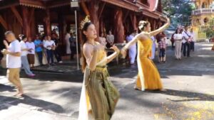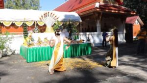 ทั้งนี้ในช่วงเช้า มีพิธีบวงสรวงและรำบวงสรวง ทำพิธีทางศาสนาภายในอุโบสถ เททองพรมน้ำมนต์ จากนั้นรำถวายต้อนรับจาก ทีมนางรำแก๊งนางฟ้าบางใหญ่แห่พุ่งองกฐินสามัคคี ช่วงบ่ายถวายพุ่งกฐินสามัคคี แก่พระภิกษุสงฆ์