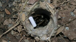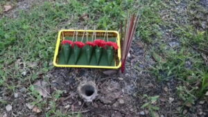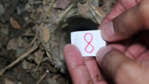 อ่างทอง – เลขเสี่ยงทายพญาบึ้งตามวิถีความเชื่อของนักเสี่ยงดวงนำกระดาษตัวเลขหย่อนลงไปในรูพญาบึ้ง ตั้งแต่เย็นจนกระทั่งค่ำมืด นางพญาบึ้งคีบออกมาที่ปากรู 3 ครั้ง ได้ตัวเลข 827 ไปเสี่ยงดวง