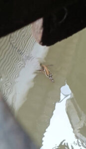 ชุมชนดังกล่าวมีลักษณะเป็นบ้านยกสูงอยู่บนคลองปลูกติดกัน ที่ใต้ถุนบ้านไม้ชั้นเดียวหลังหนึ่งเกือบท้ายชุมชน ซึ่งเจ้าของบ้าน ได้พบ “จระเข้” ลอยอยู่เหนือน้ำบริเวณด้านข้างบ้าน พร้อมเปิดรูป จระเข้ ให้ทางเจ้าหน้าที่กู้ภัยและทีมข่าวเราได้ดู ก็พบว่าเป็น ลูกจระเข้ ยาวประมาณ 30-50 เซนติเมตร เจ้าหน้าที่กู้ภัยกระจายกำลังลังเดินตรวจสอบโดยรอบ ก็พบ ลูกจระเข้ ตัวดังกล่าว ลอยคออยู่ใต้ถุนบ้านดังกล่าว ก่อนจะว่ายน้ำหนีไปใต้ถุนบ้านอีกหลัง เจ้าหน้าที่กู้ภัยก็ไล่ตามไปหา ลูกจระเข้ตัวดังกล่าวก็ว่ายหนีไปหลังถัดไป ก่อนจะดำน้ำหายไป เจ้าหน้าที่กู้ภัยวนหาอยู่นานกว่า 1 ชั่วโมง แต่ก็ไม่พบ จึงแจ้งทางเจ้าของบ้านและผู้นำชุมชนหากพบเจอให้แจ้งมาทางมูลนิธิทันที