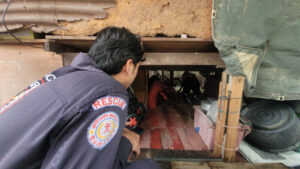 เมื่อเวลา 15.30 น. วันที่ 13 ตุลาคม 2568 เจ้าหน้าที่มูลนิธิร่วมกุศลสมุทรปราการ ได้รับแจ้งจากชาวบ้านภายในชุมชนข้างป้อมตำรวจตู้ยามสะพานปลา ตำบลท้ายบ้าน อำเภอเมือง จังหวัดสมุทรปราการ ว่า พบ “จระเข้” บริเวณใต้ถุนบ้าน หลังรับแจ้งจึงจัด กำลัง เจ้าหน้าที่กู้ภัย เดินทางตรวจสอบ