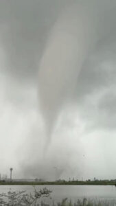 ภาพจากคลิปมือถือที่ชาวบ้านในพื้นที่ถ่ายเอาไว้ได้ในขณะที่ขับรถใกล้นิคมเอเชีย อำเภอบางบ่อ จังหวัดสมุทรปราการ โดยพบว่าเกิดพายุงวงช้างค่อนข้างใหญ่พัดถล่มในพื้นที่จนทำให้เกิดลมหมุนซัดหอบเอาบ้านเรือนประชาชนในพื้นที่ปลิวลอยขึ้นท้องฟ้า ขณะที่อีกคลิป เป็นการบันทึกได้จาก ผู้ใช้เฟสบุ๊ค ชื่อว่า เด็กมันห้าว อยากกินข้าวผ่านธุป ได้ใช้มือถือถ่ายเอาไว้ได้ทัน จากภาพจะเห็นความรุนแรงของพายุงวงช้างก้อนนี้ที่เกิดขึ้นถือได้ว่าแทบจะเป็นครั้งแรกที่เกิดขึ้นขนาดใหญ่เช่นนี้ในพื้นที่ โดยเหตุการณ์ดังกล่าวเกิดขึ้นเมื่อเวลา 16.09 น. วันที่ 12 ตุลาคม 2568 ในพื้นที่หมู่ 3 ตำบลเปร็ง อำเภอบางบ่อ จังหวัดสมุทรปราการ มีบ้านเรือนของประชาชนที่อยู่ในทิศทางของพายุได้รับความเสียหายเกือบทั้งหลังจำนวน 5 ครอบครัว ขณะที่ทางนายอำเภอบางบ่อ สั่งการให้ผู้นำชุมชนและท้องถิ่นเร่งสำรวจและให้ความช่วยเหลือเบื้องต้นแล้ว โดยยังไม่มีรายงานผู้ที่ได้รับอันตรายจากเหตุการณ์ในครั้งนี้