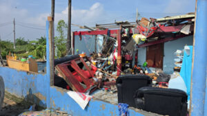 ในส่วนของพื้นที่มีบ้านเรือนประชาชนพังเสียหาย 5 หลัง มี 3 หลังที่เสียหายหนักสุด โดยเฉพาะบ้านสองชั้นที่พังทั้งหลัง