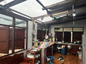 ล่าสุด วันที่ 13 ตุลาคม 2568 ทีมข่าวเราเดินทางลงพื้นที่ดังกล่าวอีกครั้ง เพื่อสำรวจความเสียหายที่เกิดขึ้นจากอิทธิพลของพายุงวงช้างลูกนี้ โดยพบว่าสภาพบ้านหลายหลังมีสภาพพังเสียหายค่อนข้างหนัก โดยเฉพาะหลังคาบ้านที่ถูกลมพายุซัดหายไป ขณะที่บางหลังพังเสียหายทั้งหลังก็มี