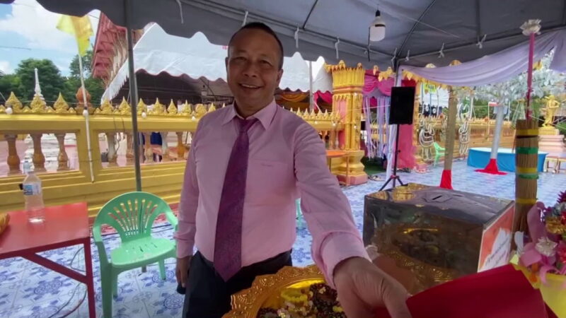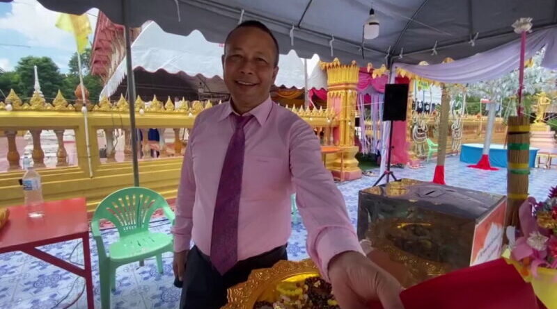 อ่างทอง – สีสันงานปิดทองหลวงพ่อเพชรวัดจันทรารามชาวบ้านทำบุญ200ขึ้นไปแจกซองอังเปาเป็นสลากกินแบ่งรัฐบาล1ใบ นำไปลุ้นรางวัล เผื่อถูกรางวัลใหญ่จากการทำบุญ
