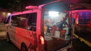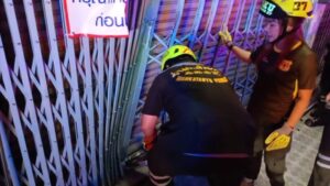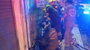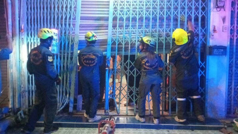 ที่เกิดเหตุเป็นอาคารพาณิชย์สูง 3 ชั้น เลขที่ 825/734 ด้านหน้าพบรถยนต์นั่งส่วนบุคคลยี่ห้อ โตโยต้า โซลูน่า สีดำ ทะเบียน วค 1971 กรุงเทพมหานคร จอดคาประตูเหล็กหน้าบ้าน สภาพกันชนหน้าแตกร้าวและยางล้อหน้าด้านขวาแตก อาสาสมัครช่วยกันนำรถออกจากจุดชนได้สำเร็จ