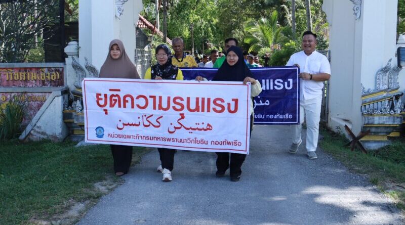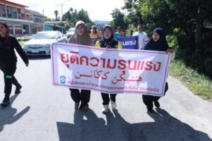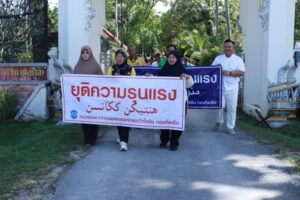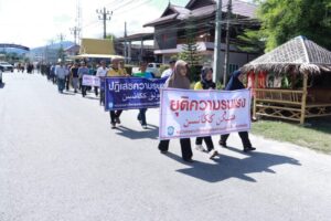 โดยชาวบ้านจากหลายชุมชนในพื้นที่ ที่พร้อมใจกันออกมาเดินขบวนแสดงพลัง “ต่อต้านความรุนแรง” รวมพลัง “ปฏิเสธความรุนแรง“ ซึ่งบรรยากาศของการเดินขบวนในวันนี้เต็มไปด้วยพลังและความตั้งใจของประชาชนในพื้นที่ ที่ต้องการแสดงออกถึงจุดยืนร่วมกันว่า “ไม่ยอมรับความรุนแรงในทุกรูปแบบ” ชาวบ้านทุกเพศทุกวัยต่างถือป้ายข้อความ “ยุติความรุนแรง” “ปฏิเสธความรุนแรง” และ “คืนสันติสุขให้บ้านเรา” เพื่อส่งสารไปยังผู้ก่อเหตุให้ยุติการกระทำที่สร้างความเดือดร้อนแก่ผู้บริสุทธิ์