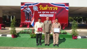 เวลา 08.00 น. ร่วมพิธีกล่าวคำศัพท์ปฏิญาณตนและอุดมคติตำรวจมอบเกียรติคุณข้าราชการตำรวจดีเด่นผู้ให้การสนับสนุนข้าราชการตำรวจ ณ ลานหน้าตำรวจภูธรจังหวัดมุกดาหาร