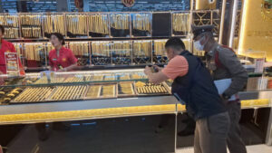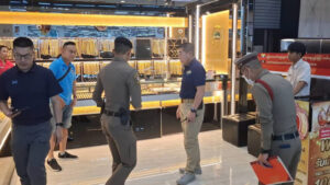 คนร้ายบุกเดี่ยว ควงปืน ปาระเบิดปิงปองเบิกทางก่อนเข้าไปกวาดทองคำไป 12 เส้น หนัก 24 บาท ในห้างดังย่านยางเสาธง ก่อนขี่มอไซค์หลบหนี