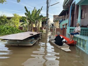 ปทุมธานี – น้ำท่วมสามโคกวิกฤตชุมชนวัดเจดีย์ทองจมน้ำกว่า 2 เดือนระดับน้ำสูงเกิน 1 เมตร